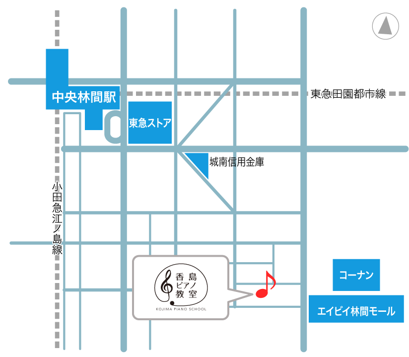 香島ピアノ教室は中央林間駅から徒歩 10分の建物の1階にあります。