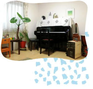個人宅の一室を完全レッスン室として使用し、のびのびとレッスンができます。レッスンでは主にアップライトピアノを使用しますが、グランドピアノもご用意しています。