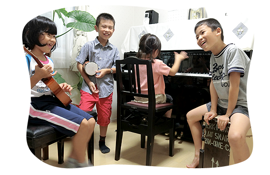 ソルフェージュを中心に音感やリズム感の基礎力を身につけながら、ピアノを弾くだけではなく、時には違う楽器や珍しい楽器なども取り入れ、音楽そのものを楽しんでゆきましょう。